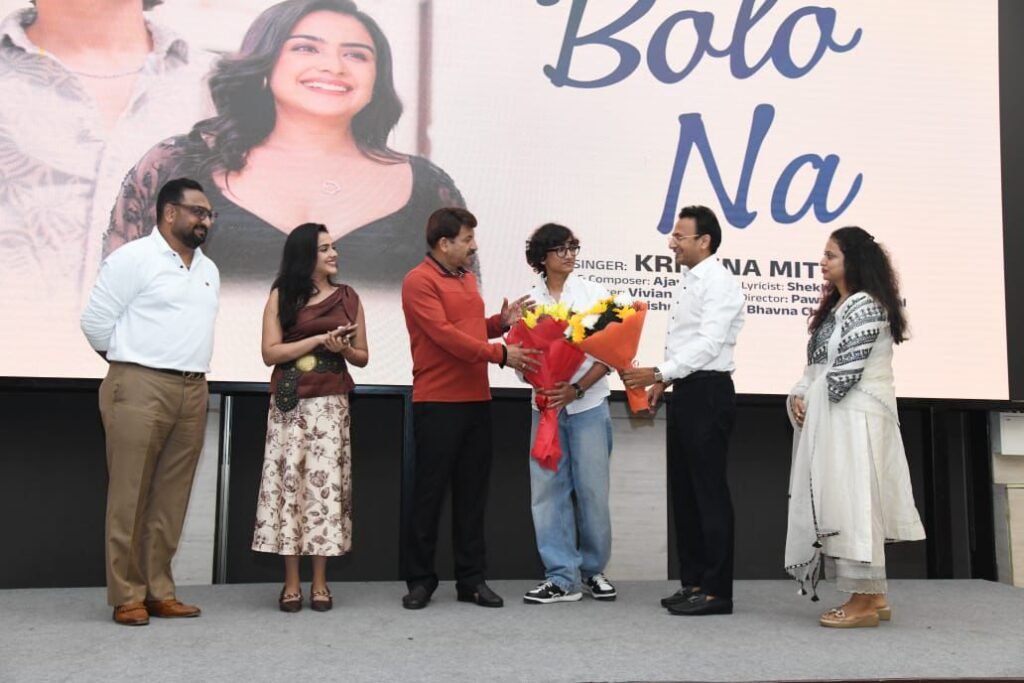 नई दिल्ली दिल्ली की शाम सोमवार को संगीत के रंग में रमी नजर आई ! कंस्टीट्यूशनल क्लब ऑफ इंडिया के स्पीकर हॉल में आयोजित भव्य समारोह में गायकी के क्षेत्र में उभरते कलाकार कृष्णा मित्तल का नया गाना “बोलो ना” लॉन्च हुआ। इस मौके पर राजनीति और एंटरटेनमेंट से जुड़ी दिग्गज हस्तियों की मौजूदगी रही। इस गाने में अपनी सुरीली आवाज़ से दिल जीतने वाले युवा गायक कृष्णा मित्तल, एल्बम वीडियो में भावना चौधरी के साथ नज़र आ रहे है। गीत के बोल शेखर अस्तित्व ने लिखे हैं, संगीतकार हैं अजय जायसवाल, और म्यूज़िक प्रोडक्शन विवियन रिचर्ड्स का है।