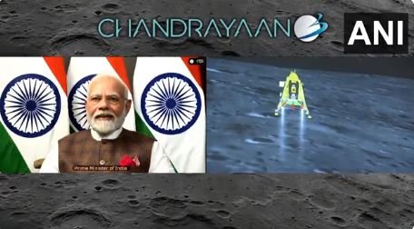 इसरो ने बुधवार को अंतरिक्ष क्षेत्र में एक नया इतिहास रचते हुए चंद्रमा के दक्षिणी ध्रुव पर लैंडर ‘विक्रम’ और रोवर ‘प्रज्ञान’ से लैस एलएम की साफ्ट लैंडिग कराने में सफलता हासिल की। भारतीय समयानुसार शाम करीब छह बजकर चार मिनट पर इसने चांद की सतह को छुआ। इसके साथ ही भारत चंद्रमा के दक्षिणी ध्रुव पर साफ्ट लैंडिंग कराने वाला दुनिया का पहला देश तथा चांद की सतह पर साफ्ट लैंडिंग करने वाले चार देशों में शामिल हो गया है। मोदी ने कहा, ‘जब हम अपनी आंखों के सामने ऐसा इतिहास बनते हुए देखते हैं तो जीवन धन्य हो जाता है। ऐसी ऐतिहासिक घटनाएं राष्ट्रीय जीवन की चिरंजीव चेतना बन जाती है।’ उन्होंने कहा, ”यह पल अविस्मरणीय है, यह क्षण अभूतपूर्व है, यह क्षण विकसित भारत के शंखनाद का है। यह क्षण नए भारत के जयघोष का है। यह क्षण मुश्किलों के महासागर को पार करने का है। यह क्षण जीत के चंद्र पथ पर चलने का है। यह क्षण 140 करोड़ धड़कनों के सार्म्थय का है। यह क्षण भारत में नई ऊर्जा, नये विश्वास, नई चेतना का है। ये क्षण भारत के उदयमान भाग्य के आह्वान का है।